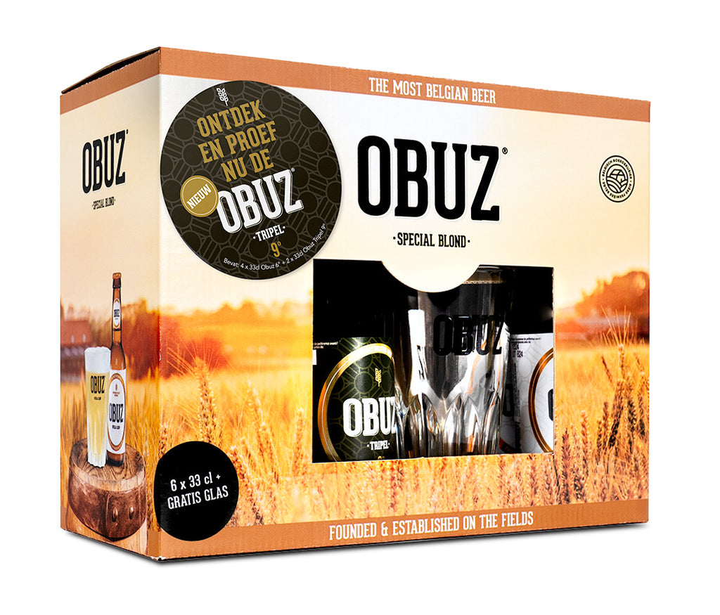 Cadeaubox OBUZ : 3 tripel Obuz + 3 blond Obuz + 1 GRATIS glas